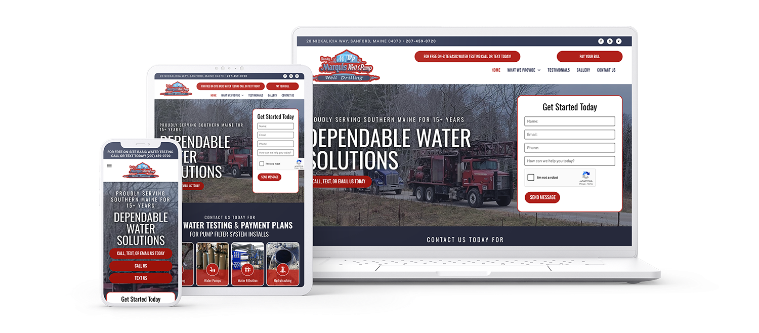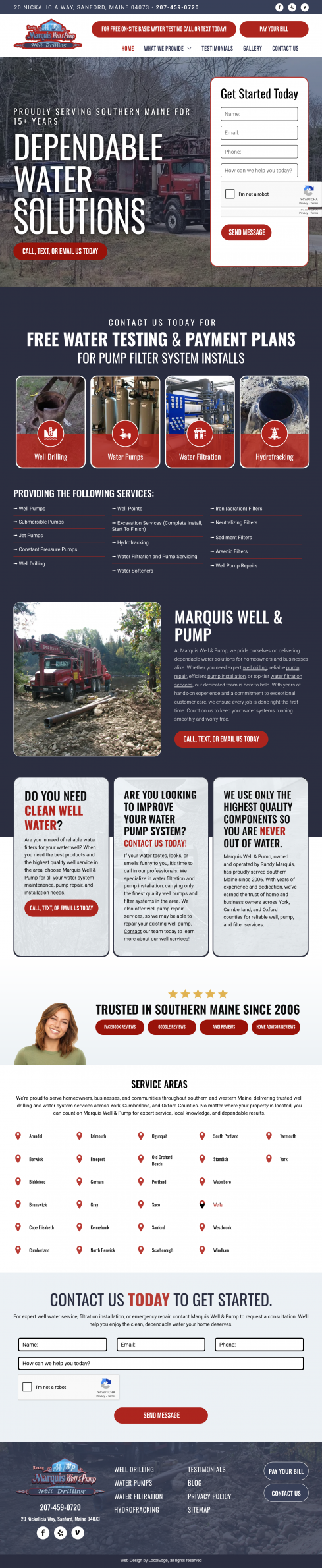 Marquis Well & Pump approached us with a website dense in content that required thoughtful organization and a clear emphasis on their specialized services, trusted reputation, and broad service area. To achieve this, I strategically showcased their expert offerings through compelling imagery and interactive icons, making key information more engaging and accessible. Lengthy bullet points were neatly structured within tables to enhance readability and prevent overwhelming the viewer. Additionally, I incorporated generous negative space throughout the design, creating a clean, balanced layout that reduces visual clutter and improves user experience. To maximize opportunities for customer engagement, I integrated contact forms prominently in both the header and footer, ensuring potential clients can easily reach out from any point on the site.